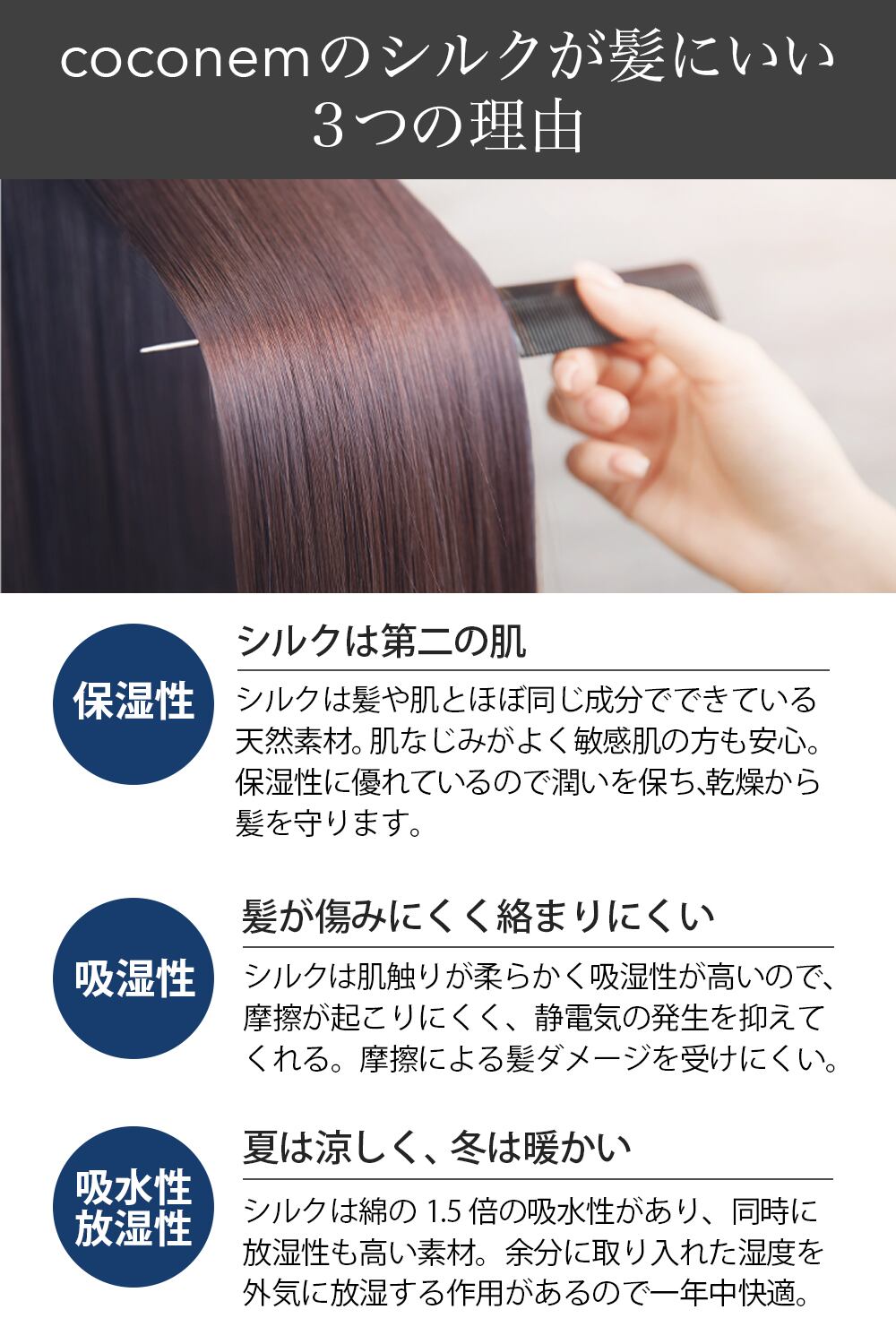 【両面シルク100%】シルクは髪や肌と同じ「タンパク質」でできた天然素材。肌や髪にやさしく低刺激。寝ている間の乾燥&摩擦から肌や髪を守り「美髪・美肌」へ導く。